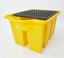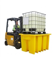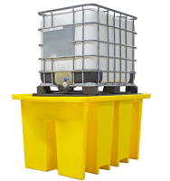 IBC Sump Pallet with Integral Dispensing Area Features This is a rugged sump pallet for the spill containment and storage of one IBC (Intermediate Bulk Container) and the bund incorporates an integral dispenser below the tap to catch drips and spills. The strong and durable sump pallets come in a bright yellow colour. The bund pallet has moulded supports to locate the IBC. The IBC spill pallet is constructed from durable (modified for strength) high density polyethylene (HDPE) and manufactured using a rotational moulding process. These IBC sump pallets are corrosion resistant and suitable for most liquids. Ideal for the spill containment of storing various acids, alkaline solutions, oils and non-flammable chemical substances. The spill pallets bases are designed with forks at the bottom for easy handling by forklift truck or hand pallet truck (Width 24.5cm, Inside Spread 14.5cm, Height 10.0cm). The sump pallets are compliant with EPA 40CFR 264.175, SPCC 40CFR112.7, NPDES 40 CFR 122.20 standards, tested and guaranteed leak free and in accordance with UK legislation. If you require any additional information or technical details regarding this product please contact us as our staff are at your full disposal. Delivery is FREE to mainland UK, excluding Northern Ireland, Scottish Highlands and Islands. Please call for a delivery price to these regions. Prices do not include VAT. Sump pallets in stock are available for immediate despatch. Sump Pallet ProductDimensionsVolumeLoad BB1DT 1880x1340x1035 mm 1125 L 2000 kg