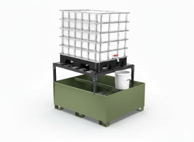The IBC sits on top of slats which are easily removeable to aid cleaning. The spill pallet bases are designed with slots at the bottom for easy handling by forklift truck or hand pallet truck.
