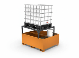 The containment tank is suitable for collecting flammable liquids (GHS categories 1 – 3) and water pollutants (GHS categories 1 – 4). It can be moved by forklift or by hand, with the wheel and handle kit (optional); To calculate whether the capacity of the tank complies with the needs, it must be taken into account that the tank must be able to contain at least the greater quantity between the volume of the largest container and 33% of the sum of the volumes of the containers placed above the tank itself.