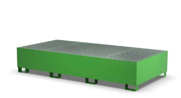 The IBCs sit ontop of a removeable galvanised grid which is easily removed to aid cleaning. The spill pallet bases are designed with slots at the bottom for easy handling by forklift truck or hand pallet truck.